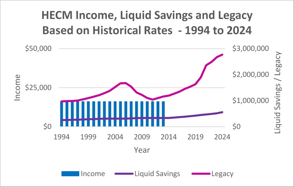 While similar to the housing market generally, the plan reflects the decline in prices post-financial crisis while still delivering the homeowner with income and liquid savings to supplement his retirement plan and still preserve a substantial legacy.
